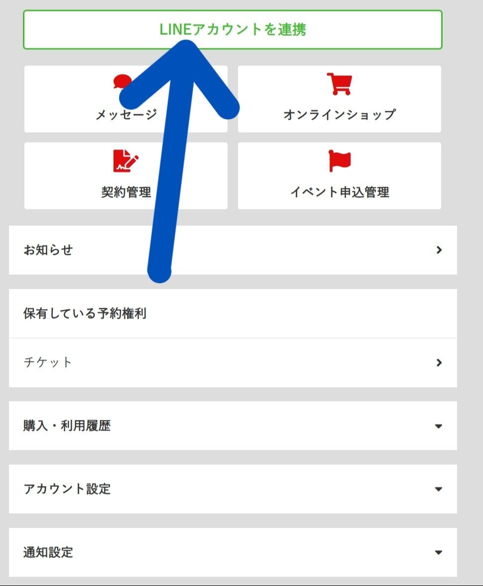 【マイページ】⇒【LINEアカウントを連携をクリック】⇒【QRコードorメールアドレスでLINEログイン】⇒【認証確認】⇒設定完了